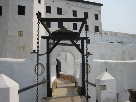The Portuguese arrived here in 1482 attracted by vision of gold. They built a fort with a church inside it, as they did in many other places along the West African coast. The Dutch, their arch-rivals at the time, showed up in 1637 and kicked them out. They enlarged the fort with two moats and a drawbridge