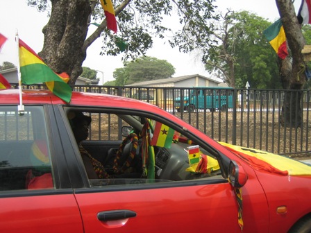 blackstar_feverr_sm.jpgFrom there we threw ourselves into traffic that had doubled in size since the previous week. The frenzy for the Africa Cup Football tournament is heating up. It was very apparent that the ships from China had arrived with all possible kinds of stuff that would add to the patriotism and nationalism that sport events of this magnitude tend to bring out. I imagined the factories in China running non stop for the last month to produce the thousands of flags, hats, badges, balls, umbrellas and whatnot that were now being hawked on the streets by colorfully bedecked young men and women. blackstar_fever2_sm.jpgThe pace was clearly picking up. We saw little of that last week and I suppose this was because the ships had not arrived yet.