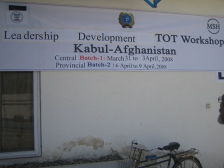 We are doing the training in the MSH office This means we are completely self-sufficient: above us is the secretariat, all around us are MSH support and technical staff, down the hall is the kitchen that provides us with food and drink, and next door the prayer room so no one has to leave the place. Next week is going to be quite a show, we will have the biggest of MSH’s conference rooms set up in theater style to seat about 50 people and on each side of it a workshop room seating about 25 provincial health authorities, NGO representatives and technical advisers around smaller tables.