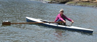 I did try out my new Alden shell yesterday. I wore Axel’s olive green wellies so that I did not have to get my feet wet before stepping into the boat. Compared to the dory or the kayaks this new boat is fast: it takes me about 10 seconds to cross the cove at mid-tide. The real rowing will have to happen out on the bay. A flat sea is preferable over the usually choppy waters so I may need to wait until after this trip. In the meantime Axel insists on re-doing the woodwork (seat, oars, footrest) with real marine-grade varnish, brightwork, so that the boat looks presentable again. He is also making a case for waxing the fiberglass with something that keeps it from deteriorating in the sunlight. Of course all these chemicals will probably cancel out whatever ecological benefit this boat will bring to this household.