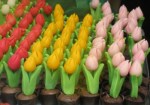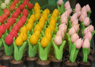The market was not there. Instead there was a midway complete with merry-go-around, bumper cars, shooting galleries and some scary thing with two arms that held people like a giant and took them on a wild right high in the air, upside down and then down again. There was a lot of screaming and it made me dizzy just to look at it. We did find the herring, the fries, and even a large piece of apple pie with whipped cream. It was lunch and part of dinner. We even found edible tulip fields in a pastry shop.