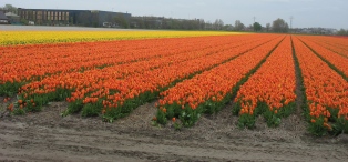 We meandered northwest to Haarlem through the tulipfields which are always amazing, no matter how often I have seen then. They grow on the sandy soil right in back of the dunes. Axel noticed that the soil is really sandy, grey-colored like you would find it in the woods on Cape Cod, and that is was therefore no surprise that our tulips in Manchester don’t do so well, as they are planted in very rich dark soil.