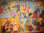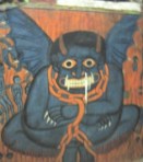 I learned that the bad people are portrayed with one eye only while the good people are shown with both eyes. In most of the pictures the one-eyed people do terrible thing to the two-eyed people; a true horror show with severed heads, limbs, drownings, quartering and finally, the devil himself in dark and menacing colors.