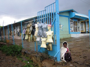 Yesterday we visited Mount Entoto which looks out over Addis. Emperor Menelik II, claimed to be a direct descendant from King Solomon and the Queen of Sheba, built his palace there and founded Addis Ababa. It is considered a sacred location with several simple and rusty tin-roofed monasteries surrounding the church and palace. The church was not accessible to us. The palace consists of three simple structures where king Menelik II and his wife Taitu slept, ate and received guests, each category of guests required to enter and leave through a separate entrance. Compared to the quarters of their royal and imperial contemporaries in Europe, the buildings were striking in their simplicity. They also contrasted with the heavy embroidered and bejewelled gowns worn by the imperials and clergy which we saw earlier in the adjacent museum.