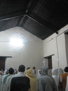 A nearby church, named after archangel Raguel, was open. Like the other structures it was simple on the outside but awesome on the inside. Around the central room, only accessible to men, so not us, the biblical stories were painted in the typical bright-colored Ethiopian style. I recognized most of the imagery although there were some stories (like St. George slaying the dragon) that did not come out of the bible that Tae and I know.