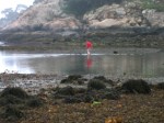 Lobster Cove is empty this morning. No more than a small puddle in the middle. We have missed the mussel meals. I woke Axel up to investigate where they had gone. It was little early for him but the cool morning air and the cold water woke him up. He reported that they were either washed away or buried. I followed him at a distance and took pictures. Even though it is an overcast morning, it is beautiful. There is no horizon. The white sky is fused with the far away waters of the sea.