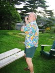 Our friends Anne and Chuck came for a private birthday dinner party. We sat by the cove toasting to Axel’s 62st and to my mother who would have turned 90 yesterday. When the mosquitoes came out we equipped Chuck with a mosquito zap racket. He made them disappear doing mosquito tai chi, which took the life force out of them, and then we killers went inside.