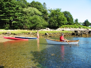 In the afternoon we had nearly our whole fleet out: Axel in his boat, Steve in the red kayak and I in my Alden (while Tessa was selling leather goods in Rockport). Rowing on machines is much of what Axel does at the PT office and so doing the real thing seemed to make sense; but it is a little harder with waves and wind. Axel tried the Alden and did well for a first time but from his face I could see he was not enjoying it, wanting instant perfection, not practice.