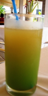 After driving past countless little beach restaurants, all equally inviting but all ignored, we arrived in Bassam at lunchtime. We had to ditch our plans to go to one of the beach places in order to honor our commitment to the rest of our facilitation team of starting our work at 2 PM. And so we settled in the hotel’s open air dining area, next to a noisy and splashy swimming pool full of teens and preteens. We assumed we could eat quickly and start on time. We did not. Lunch took an hour of preparation (grilled chicken and fries). We ordered our drinks, ginger juice, going for the least chemically enhanced drink we could find on the menu. It was served in two tones: green at the bottom and yellow at the top. We asked about the green and were told ‘c’est pour decoration.’ We asked for an undecorated drink.