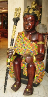 When you enter the hotel the first person (thing?) you encounter is a large seated statue of a local king in traditional garb. To me he looks like a Ghanaian king the way he is dressed with his Kente cloth and all the gold(paint), but then again, the Ghanaians and Ivoirians are cousins, if not brothers.