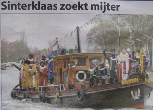 The wild dreams were about having to recite the Lord’s Prayer in front of some mitered church official (and not remembering it but not wanting to let on either) and people doing powerpoints about their lives. It all fits of course. The mitered church official must be Sinterklaas who is already in the country getting ready for his annual duties that are fairly similar to Northpole’s Santa. The local Aalsmeer newspaper showed a front page picture of Sinterklaas arriving without his miter which was found later in the room of a female inhabitant of the old people’s home he visited. Sint blushed, it was recorded, when the miter was handed back to him later. Unlike Santa, Sint comes from Turkey by way of Spain and, with his entourage, reflects both the societal values and the fashion of life in 16th century Spain.