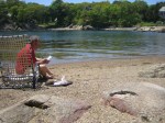 We started the day with a yoga class, that is, the girls did. Axel started it with lots of coffee and frantic work on Gary’s marketing material that had to be delivered before the day was over. As a result he missed the post-yoga picnic on the beach. The drizzle clouds departed and left us with a day more typical of July than May.