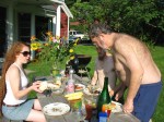 Woody came to inquire about Kabul, driving up in his antique car with his dogs in the back and a drink in his hands, the kind of scene that goes with the song ‘Summertime, when the living is easy….’ For dinner we feasted on our own broccoli, fresh corn and grilled hotdogs and hamburgers. It was the best possible homecoming we could wish. We are very grateful for all the good people and things in our life.