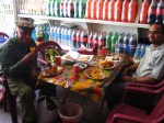 In between the shops we spotted a window filled with pakoras, small deep-fried beignets with potato and spinach filling. Naranjan is a vegetarian while the other housemates of us are carnivores and so this was his chance. Together with Abdul Ahab who is there to guard is, we filled our plates with all the pakoras and something like potato latkes. I generously offered to pay for everyone; combined with 3 cokes the bill came to 3 dollars and 60 cents.