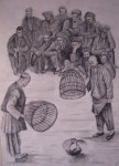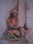 In the meantime I have bought some local art to put on my bare office walls. I spotted some lovely pencil and watercolor drawings in a rack in the back of a small dusty bookstore on Flower street during our weekly outing into town where I also found Dupree’s famous book on Afghanistan, a well used and somewhat dirty copy that will do the trick as a reference.