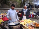 While waiting for our driver to pick us up Ali showed me around the grey and dilapidated concrete structures that housed various polyclinics: for eyes, for family planning, for drug counseling, for voluntary HIV/AIDS counseling, etc. The place was deserted; the day had ended, making it look even more ghostly and depressing. When we discovered that our car was stuck in traffic we ventured out into the street outside the polyclinic compound and walked among the vendors who were selling everything that is cheap. I love these rare ventures out into Afghan life as it gives me a chance to practice my Dari and have a taste of Afghanistan. Today this taste included corn roasted in a hot ash and salt mixture.