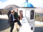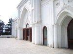 This time we could actually get into the palace and even onto the roof. It is a lovely small palace inhabited by 3 wizened old looking men, who were huddling around a small stove on which they make tea and, presumably cook their meals. There is no furniture and no heat. The only thing in the large echoing hall that reminds the visitor that this was once a place of luxury is the enormous crystal chandelier that hangs lonely from the decorated ceiling.