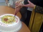 When everything was done and said sweet milk tea, cookies and cake were served in the adjoining room. Like a bride, I was asked to cut a beautiful cake with a rusty (but clean) Exacto knife that came from someone’s toolbox.