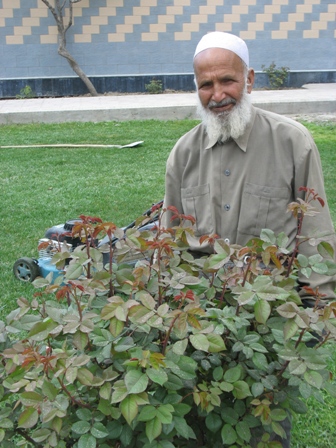 While I was wrapping things up at the Intercon Axel met Hadji Kazem, our office gardner who looks like he has stepped out of a ancient Chinese novel. He cut our grass, trimmed the roses and other bushes and a made it clear to Axel that he is in charge of both office and guesthouse gardens. I know what wonders he does for our office grounds and so I have full confidence that he will administer our small plot well; Axel has realized that here is yet another thing that he doesn’t have to worry about. It is all part of the good life here in Kabul.