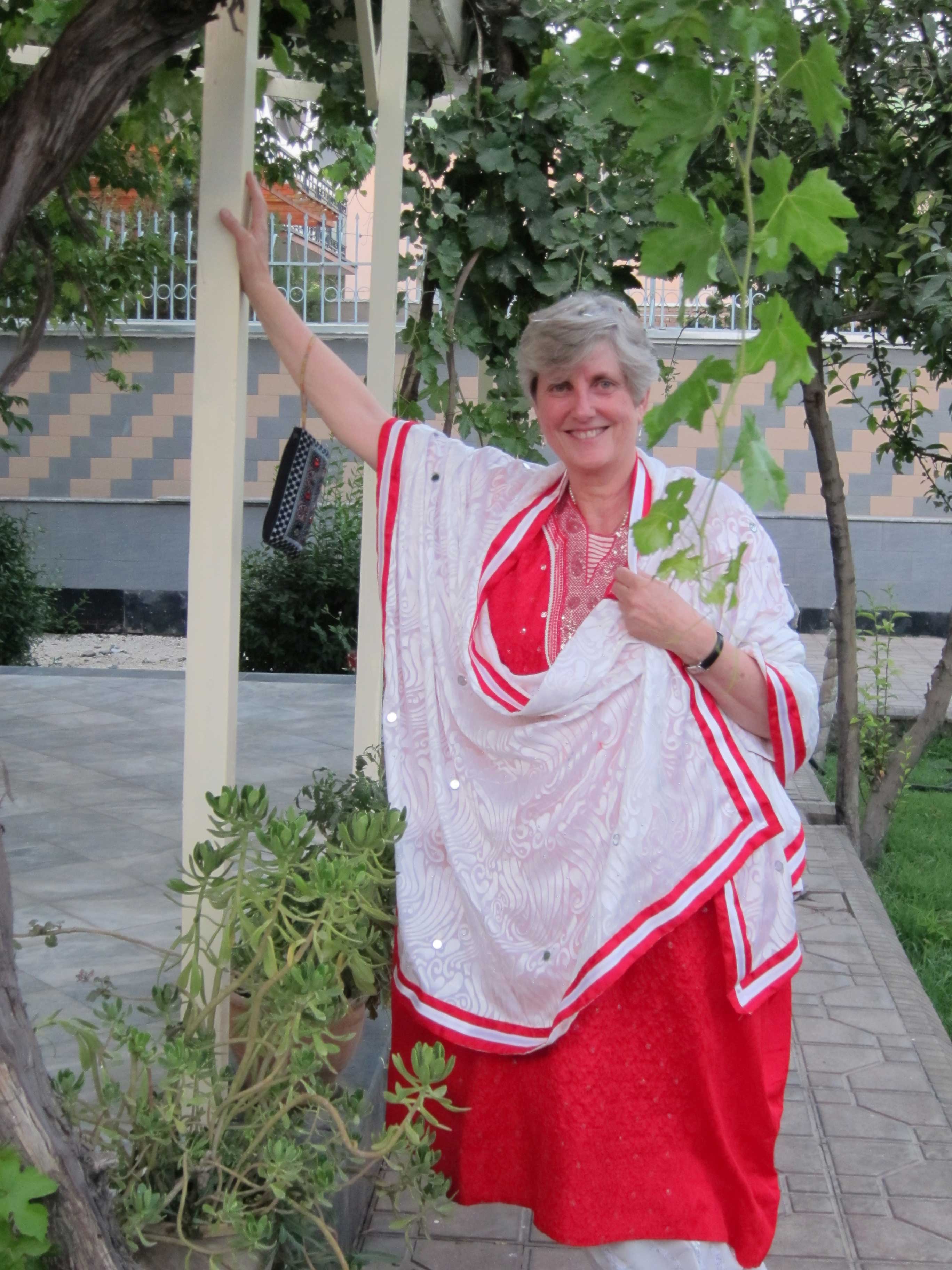 I the meantime the bride and groom and their families ate in a separate room downstairs; we went to see them and give Rabia, our colleague, a hug. She was allowed to smile in the intimate setting, but not in public. I hardly recognized her under her heavy makeup and the hairdo that looked more like a sculpture.
