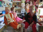 To offset the horror of being the center of attention for hundred of women and kids we bought her a towering and dusty fake Barbie with badly cut yellow hair and a dress made from fringed pink paper pasted on a cone that wrapped around her thin waist. Before our trip was over Barbie had lost her head and Kate chewed on the remaining stump of her neck. Most of the fringe had unraveled. It was good we delivered Kate home before her dress came undone and we’d have only a headless and naked pink Barbie left.