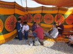 M and her family came along. They were waiting for us with a hot meal, kebabs and rice, sitting cross-legged on a colorful ground cover under a gaily colored tent that made me feel like royalty on a picnic outing.