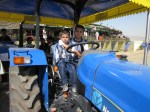 I took M’s little boys for a walk when they got tired of sitting with the slow eating adults. As boys would, they were drawn to the large shiny tractors from the New Holland company that were within our view. The salesman helped us with the photo opportunity by putting them in the driver’s seat.