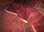 Our house guest went carpet shopping, a nearly obligatory experience for which time can always be found. She returned very content with an old Turkmen carpet, an AndKhoy runner and a Baluchi carpet that are now spread out in our living room.
