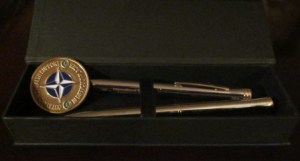 Of the 100 or so people in the room only 6 or 7 were civilians, including us. There were probably about 10 women. I still have a hard time looking at women who wear camouflage jackets and holsters and guns – call me old fashioned but to me fighting wars is something that men do. I did notice one woman sitting in a back row thumbing through a stack of family pictures as if they were baseball cards – I noticed the wistful expression on her face. It confirmed to me that women have no business here.