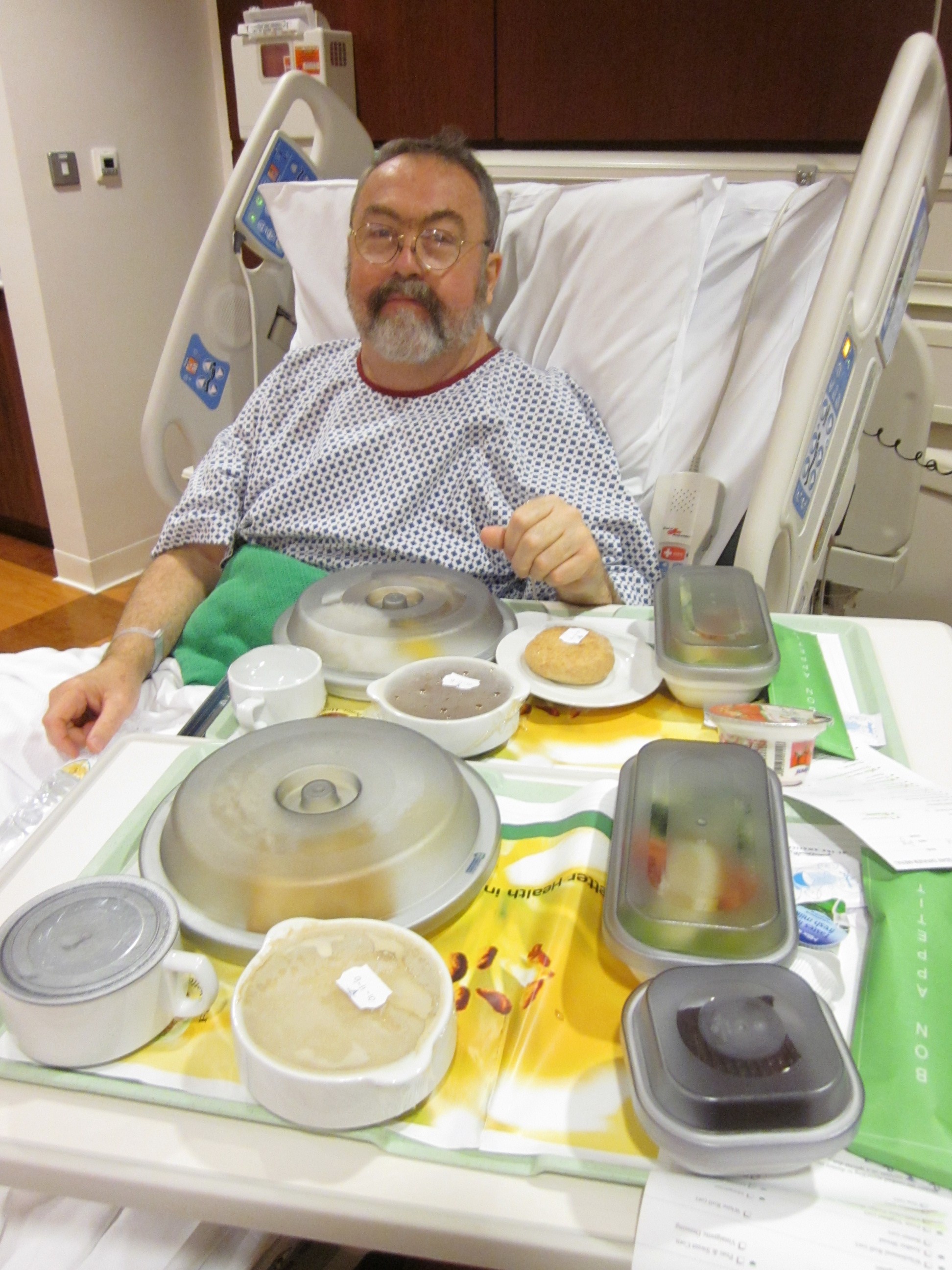 Axel will stay overnight on the suggestion of the physician (but maybe also on the suggestion of the hospital administrator – the place looked decidedly underutilized). After a romantic hospital diner a deux I returned to our apartment to say goodbye to Anne and Chuck and pack up.