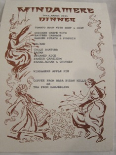 Our host and hostess served us breakfast and then we retired for a nap. In the middle of the day a knock on the door provided a superb meal, again, nothing Indian about it, accompanied by ginger tea.
