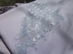 Fazel showed up with the sapphire earrings and rings that I commissioned last week. I am very happy with the result. Sita and Tessa will have to wait a few months before they get them. He also brought samples of the finest embroidery imaginable, made by his 45 year old mom. She must have very keen eyesight. Compared with that my cross stitching is of the crudest kind.