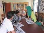In the afternoon I went over to SOLA to say goodbye to Angela who is leaving for Virginia on Sunday to start her four years of college at the University of Richmond. Her departure is a big loss to SOLA but also a victory as this is yet one more Afghan girl who will come back to join her sisters who are trying to change this place. Connie from the European Police trainers, another volunteer teacher like me, showed up with a lesson plan about the Berlin Wall, German bread and Dutch cheese, complementing my cake with its ‘safar bakhair’ (safe travels) written across the frosting.