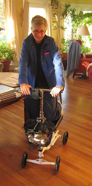 The crutches are retired except for duty once I am upstairs where there is no knee scooter and I hobble around the old fashioned way.