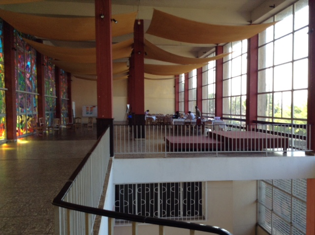 IMG_0960 IMG_0962 IMG_0963I removed the tables in the workshop and put people in a semi-circle with the tables at their back. In the evaluation at the end of the next day they said they didn’t like it. People are timid and like to sit behind a table, according to my Malagasy colleagues. But I don’t think it was only the set up. I also blame the terrible chairs, as uncomfortable as can be, and the horrendous acoustics of this weird French building dating back to 1967. I kept wondering what the architect was thinking and how the building committee could have approved the design.
