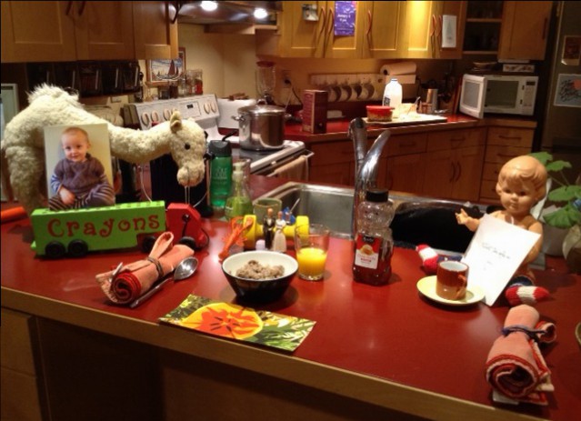 That was my first present, which was followed by Axel waking up at 5 AM, quite a feat, and preparing me breakfast with our ritual, but never the same, breakfast table decorations.dec3-2014