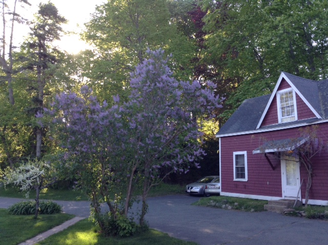 Our trees have burst into bloom: the purple of the wisteria matches the purple of the old lilac in front of the house. It is flanked by Jennee’s beach plum, which is turning to be quite resilient after many attacks. Then there is the apple tree near the garden, the light purple creeping phlox, the white creepingdeep purple double lilac, the white and blue forget-me-nots that intermingle with the raspberries. It is a feast for the eyes.
