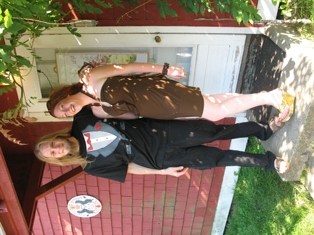 Tessa and Steve and several friends congregated at our house on their way to a wedding of one of their own, one of the first I believe for her cohort. I never see these kids dressed up and it was quite a sight to see them in their Sunday best; except Steve who simply chose a tuxedo tee-shirt – this in sharp contrast to Tessa who loves to dress up. She had traded in yesterday’s shoe selection for another pair, with a wedge that was even higher, lifting her up to the length of a basket ball player.
